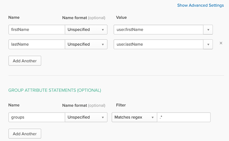 noteChoose any desired filter to limit the groups that will be synchronized to Flexera One. Use the Matches regex = .* filter to send all Okta group memberships.