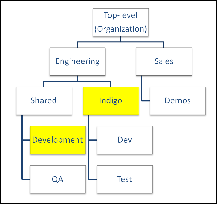 You will have access to the Development billing center under Shared and access to the Indigo billing center and all of its children. When viewing the top-level billing center page, you will see the highest parent in each branch of the hierarchy. In this case, you will see the following billing centers: