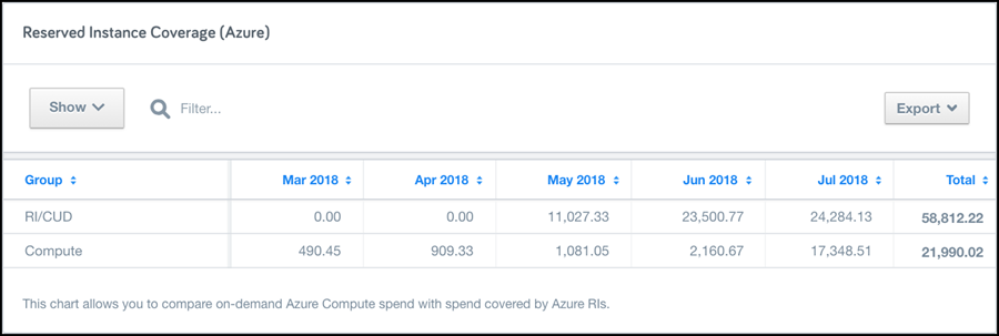 These reports shows you the proportion of monthly and daily Azure spend coming from Reserved vs On-Demand instances.